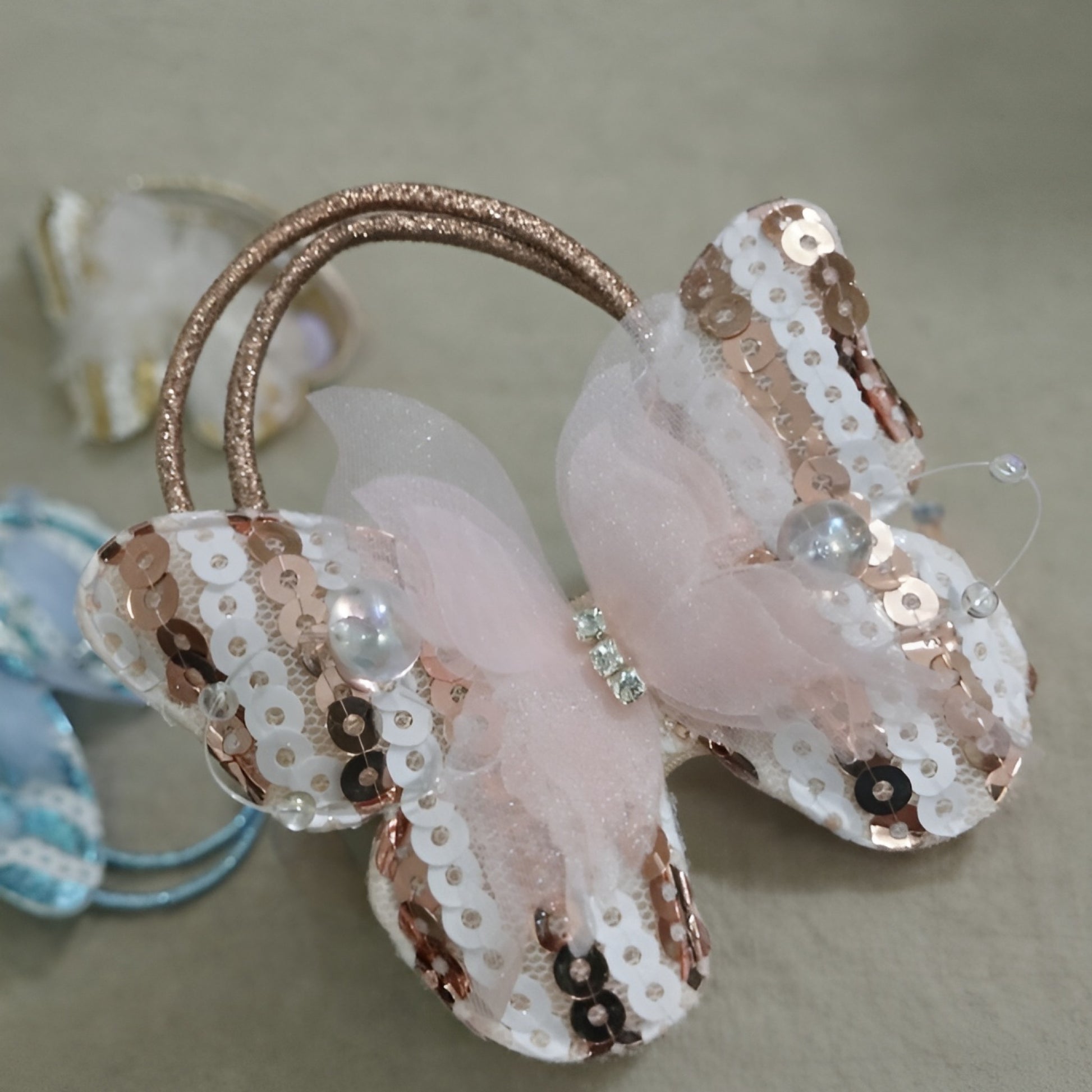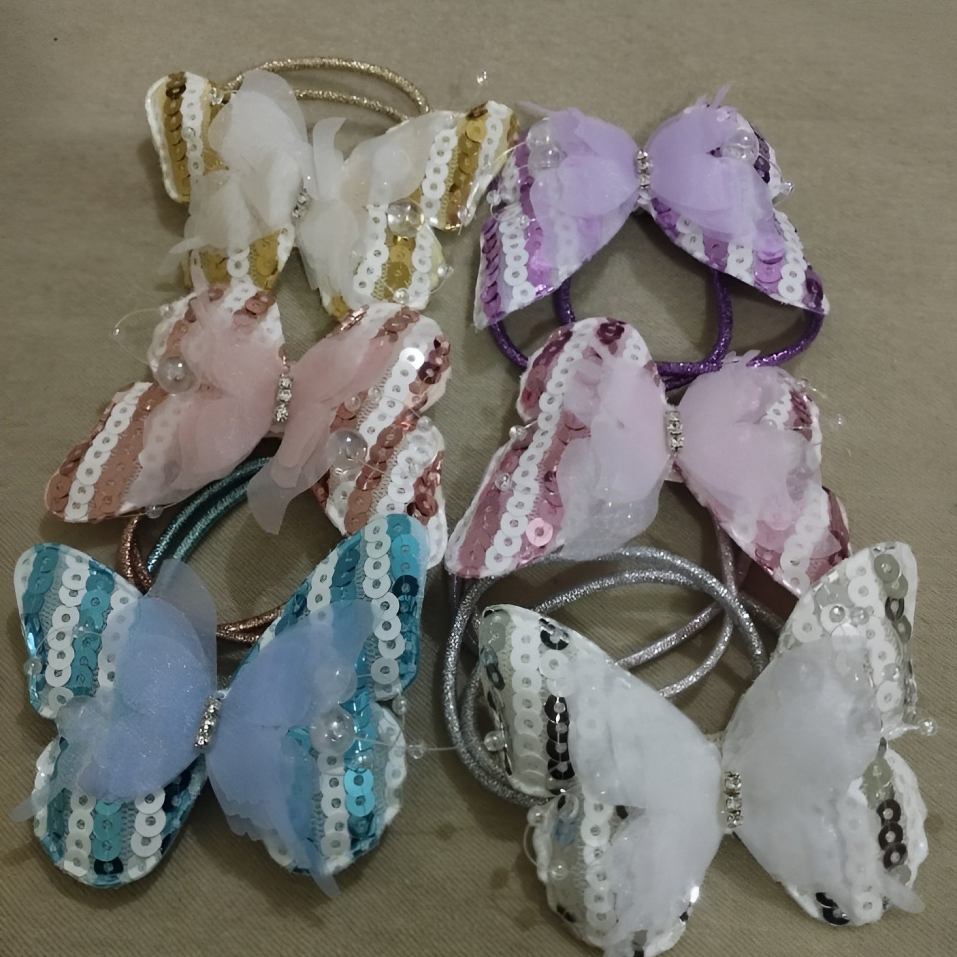 Make your little girl’s hairstyle extra special with this kids butterfly hair rubber band, designed with a sparkly sequin butterfly, soft net bow, and pearl details. Its cute and fancy look makes it perfect for children who love colorful and stylish accessories.
